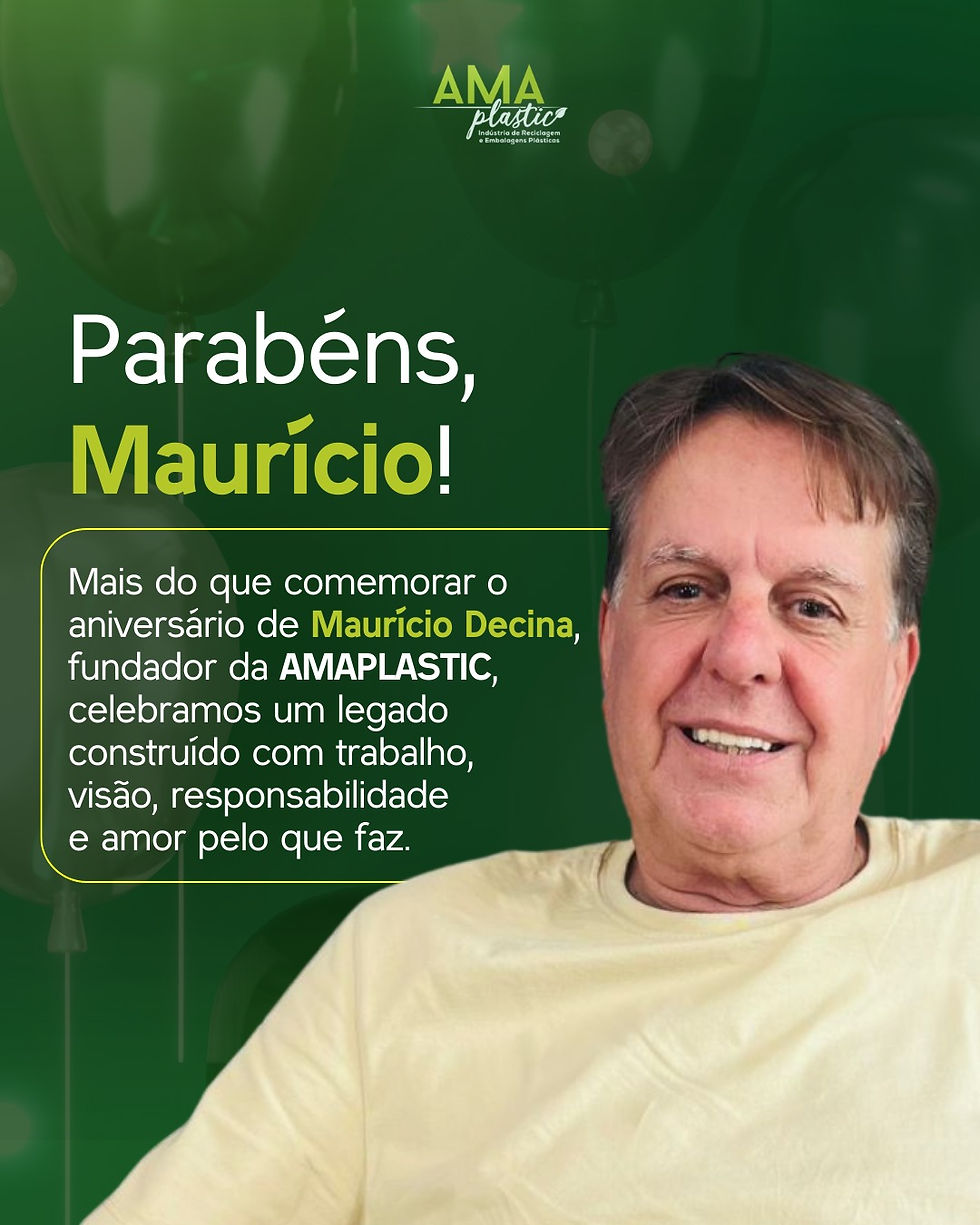 Parabéns, Maurício! Mais do que comemorar o aniversário de Maurício Decina, fundador da AMAPLASTIC, celebramos um legado construído com trabalho, visão, responsabilidade e amor pelo que faz.